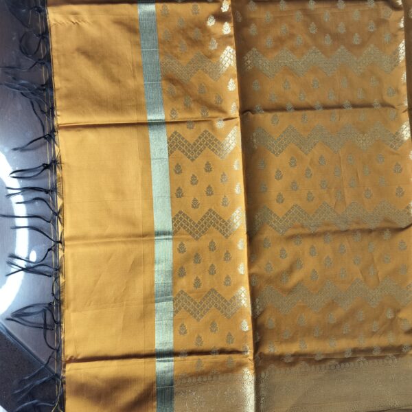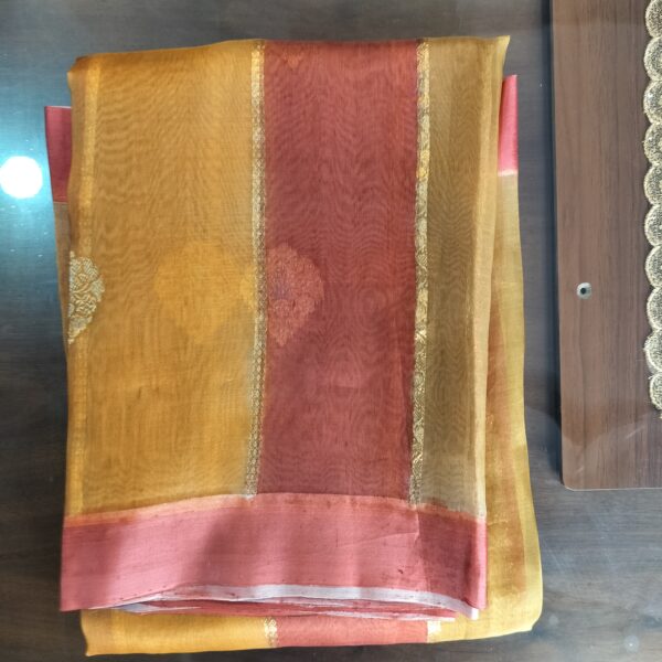 Elegant, ethnic and exclusive design. Simple, soft and sombre feeling. Awesome mix of blue and red colors at the border to add richness to the fabric. Red and blue stand out on their own and mingle together as one.