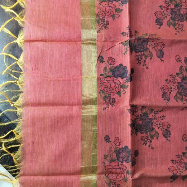 Semi stitched pure cotton camric printed kurta and lower with mul-mul dupatta