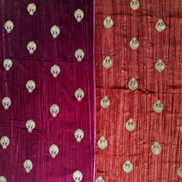 Velvette suit /coord sets with intricate golden kasab embroidered bootas all over – 2.5mtr each