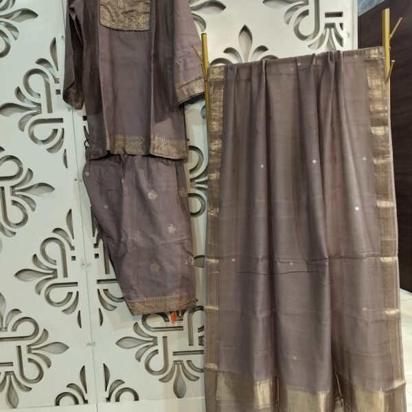 Pure Chiniya silk Handloom fabric 5 mtrs kurta and lower (same on same) with all over Zari Sona Roopa Kadua bootas