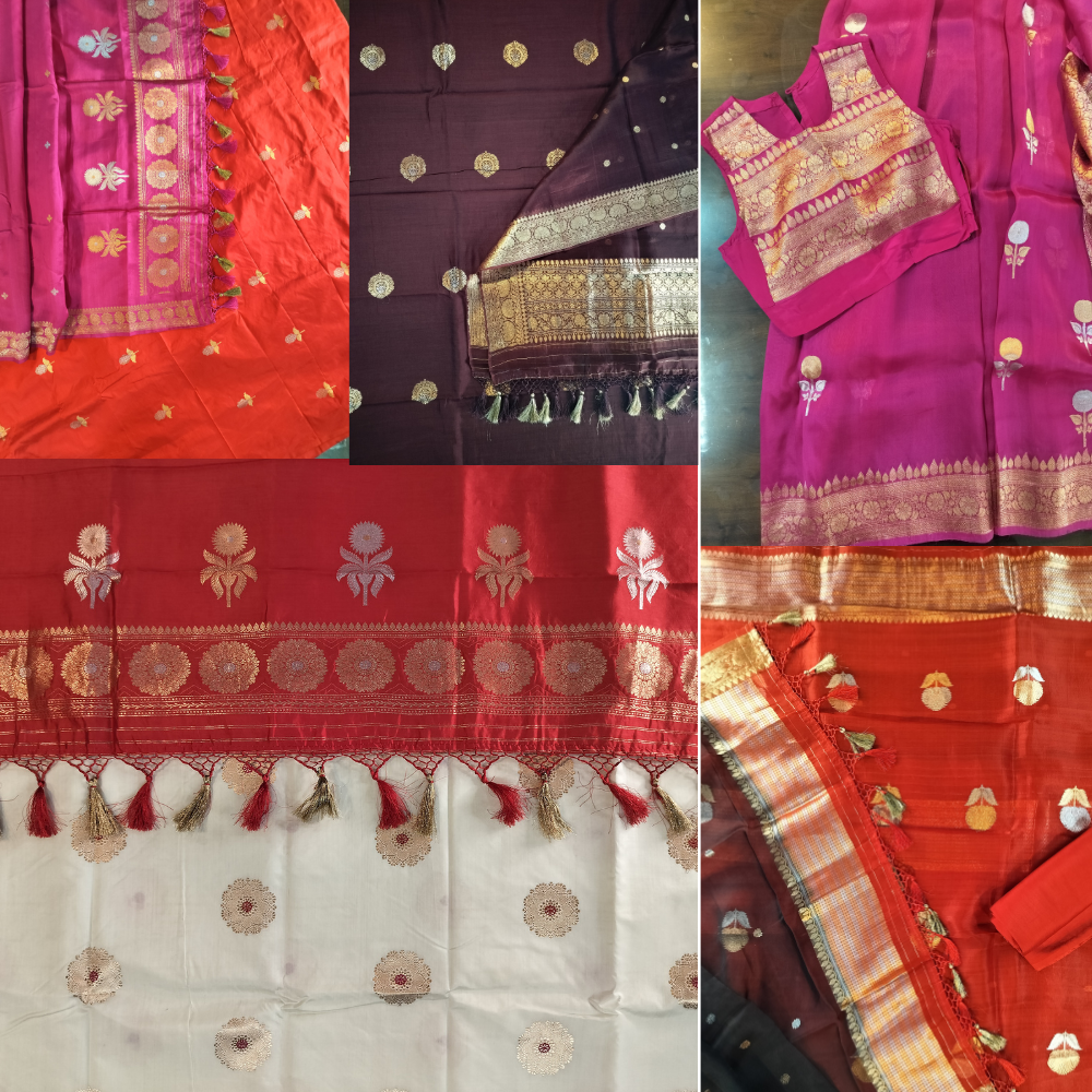 At EIMAI MY MERAKI, we believe that prosperity is an expression of both tradition and individuality. Our Exquisite Pure Silk Banarasi Collection of Zari Boota Suits and Sarees reflects the richness of Indian craftsmanship blended seamlessly with modern sensibilities. Each handwoven masterpiece is a tribute to timeless Banarasi artistry — elegant, intricate, and radiant with cultural pride.
