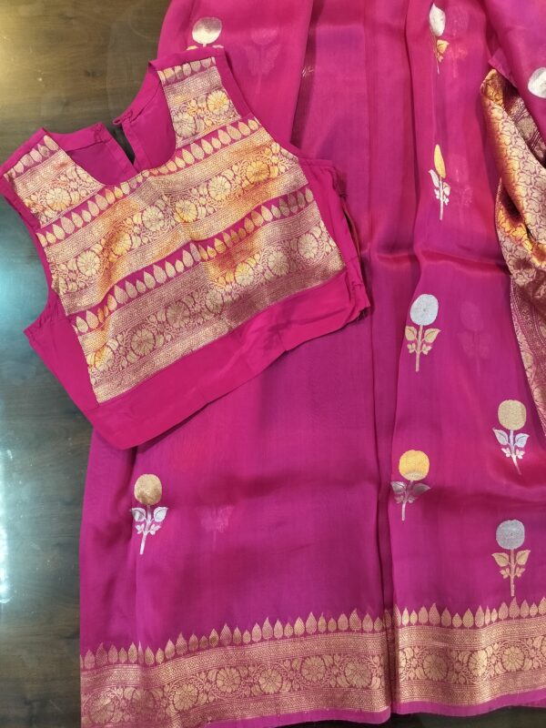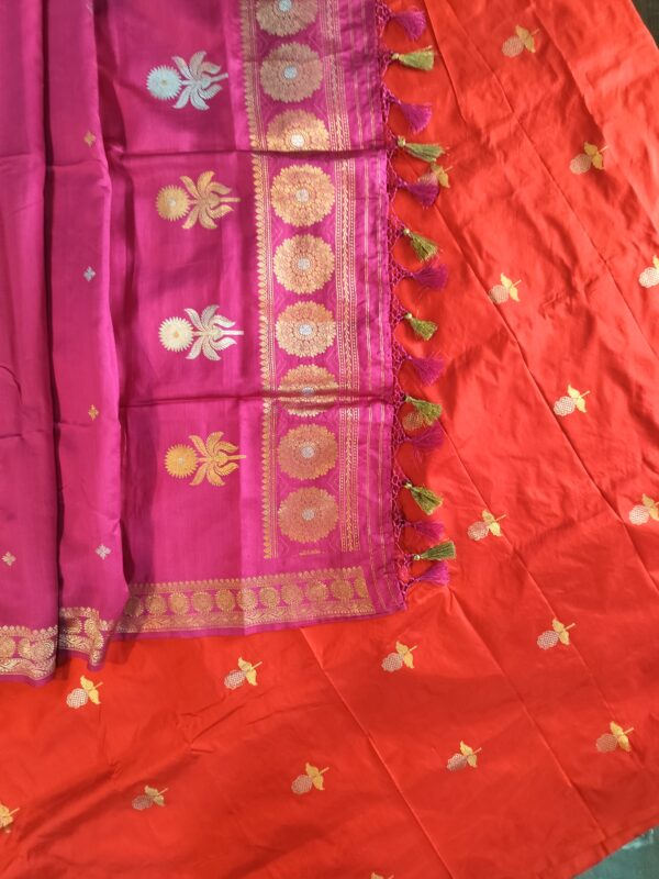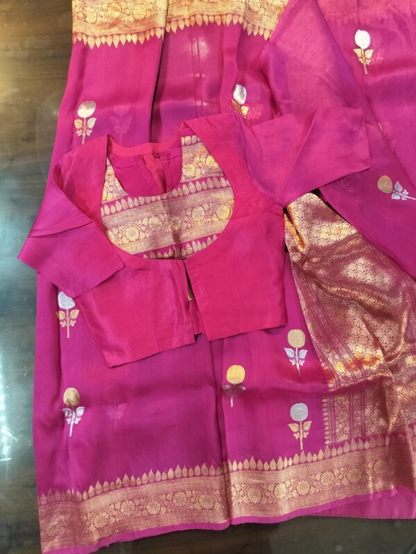 Pure Kora silk Handloom Rani pink saree with zari sona roopa kadua alfi boota