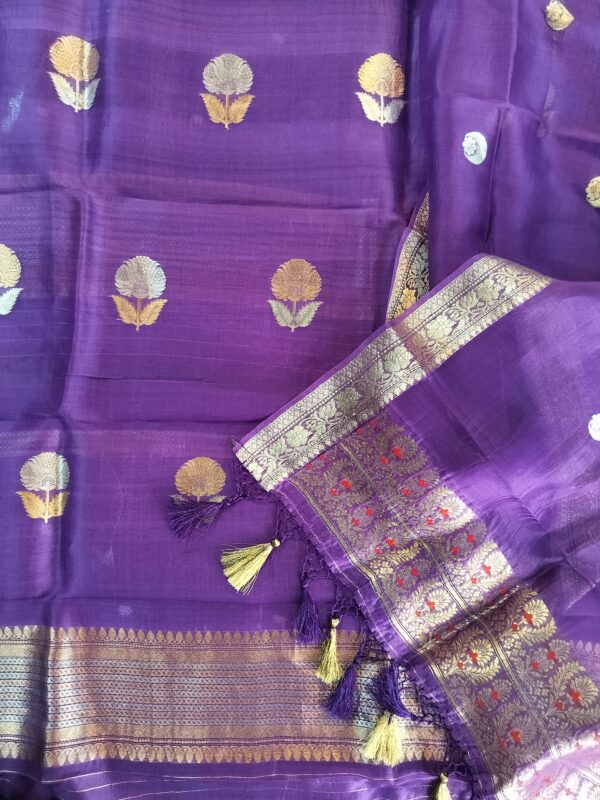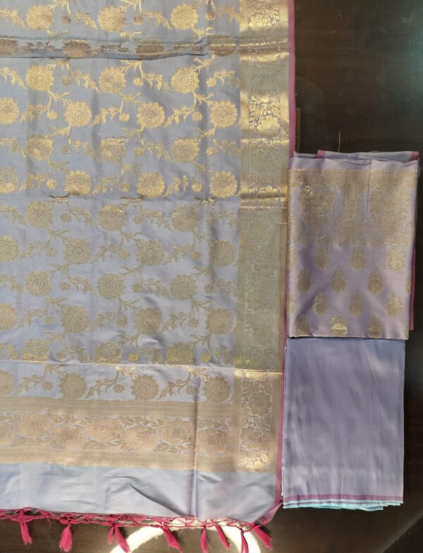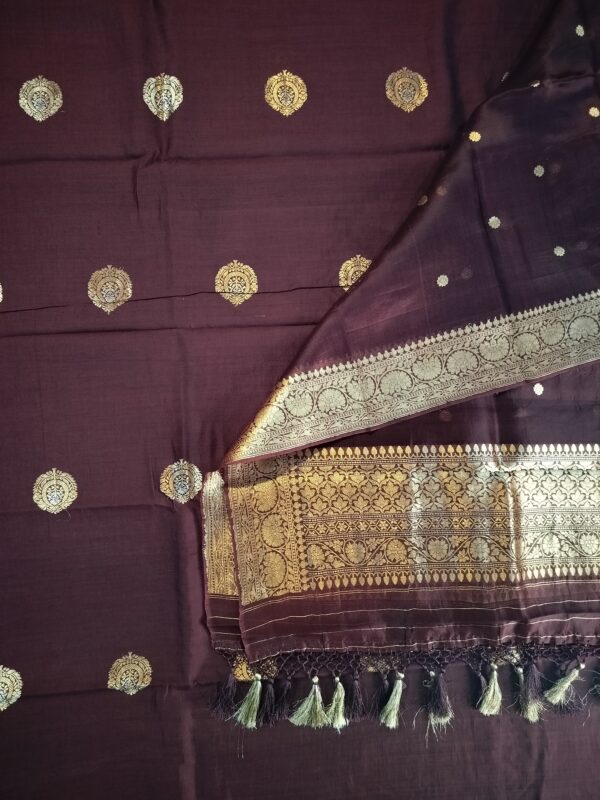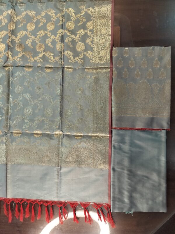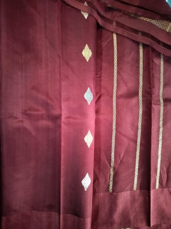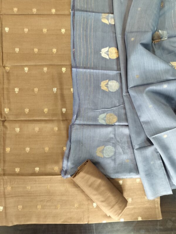 Semi Stitched Pure Chiniya silk Handloom fabric 5 mtrs kurta and lower (same on same) with all over Zari Sona Roopa Kadua bootas. (3 Piece Suit)