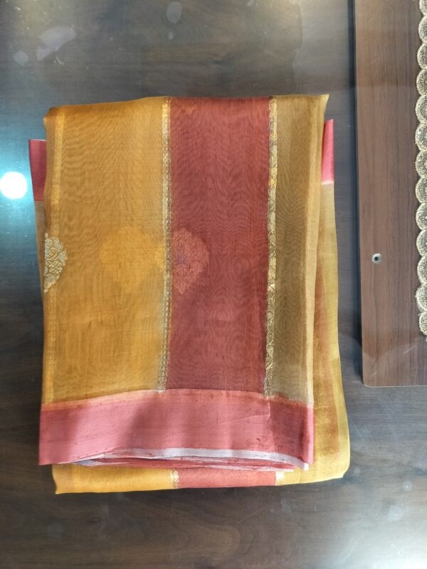 Semi Stitched Banarasi cotton silk zari weaving rangkat kurta with all over zari weaving heavy dupatta and soft cotton lower. (3 Piece Suit)