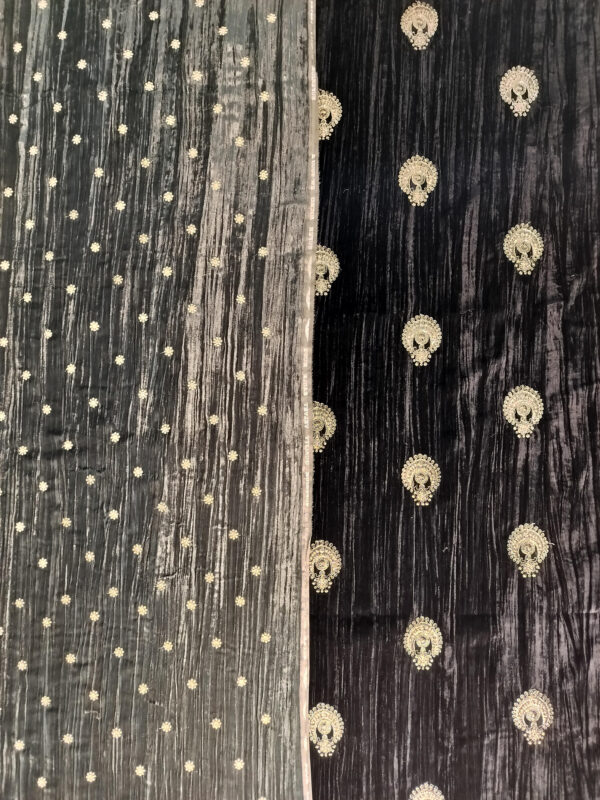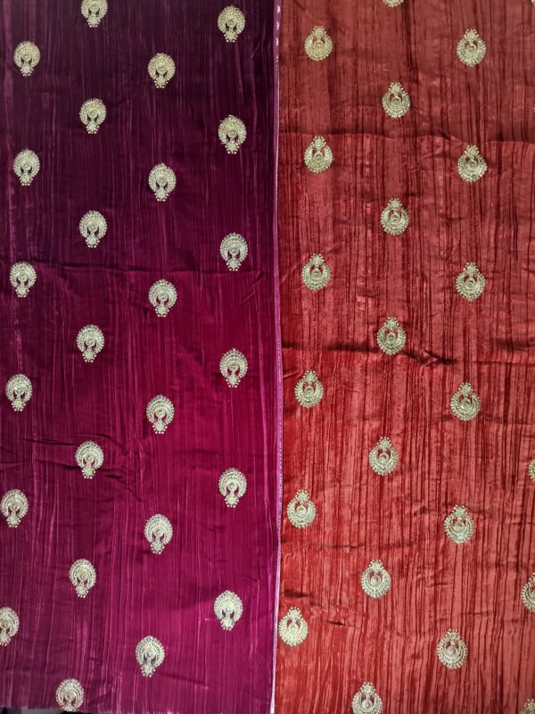 Semi Stitched Velvette suit /coord sets with intricate golden kasab embroidered bootas all over – 2.5mtr each. (3 Piece Suit)