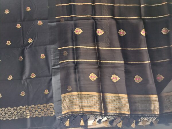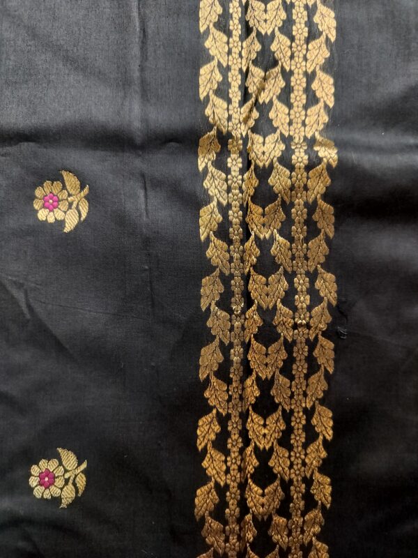 Semi Stitched Pure Silk – Cotton Handloom Black, Gold, Fuscia Pink Meenakari Kurta with same plain fabric for lower. (3 Piece Suit)