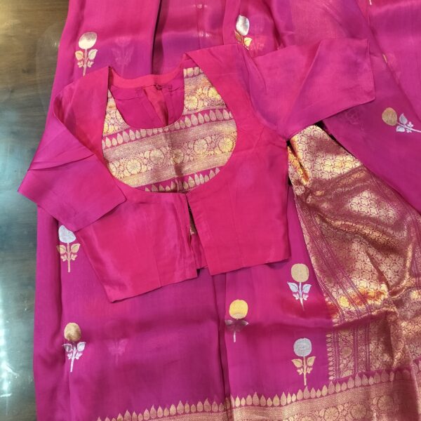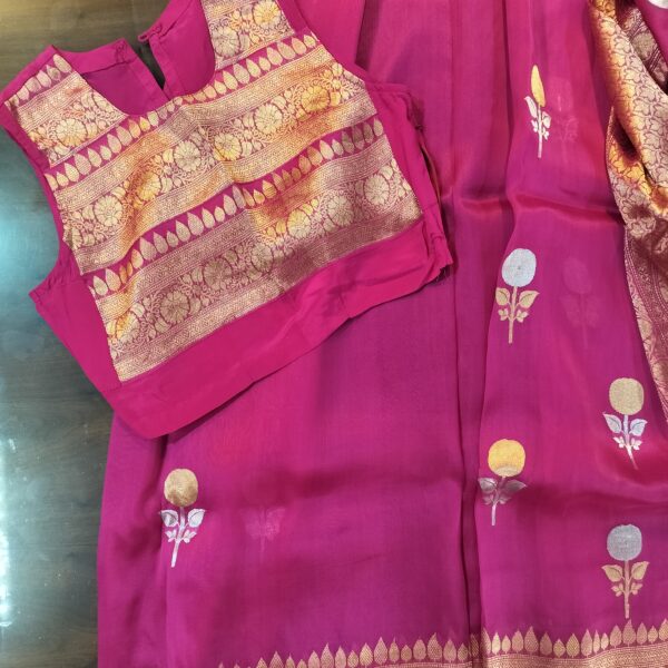 Pure Kora silk Handloom Rani pink saree with zari sona roopa kadua alfi boota